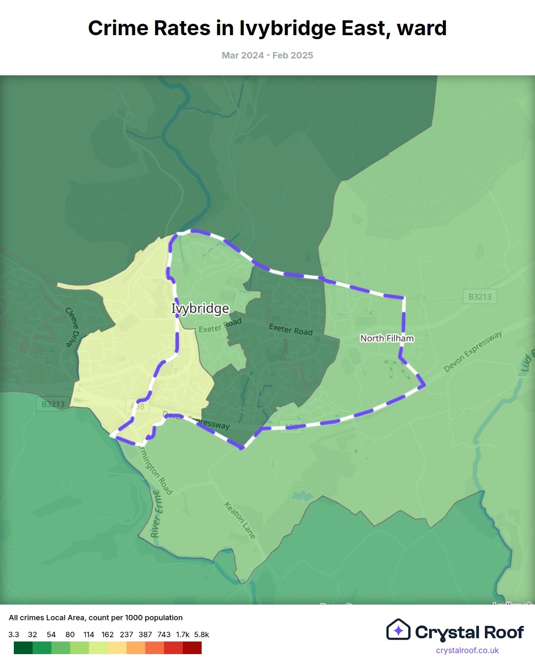Ivybridge East, (ward) includes areas with the following crime ratings (see map):