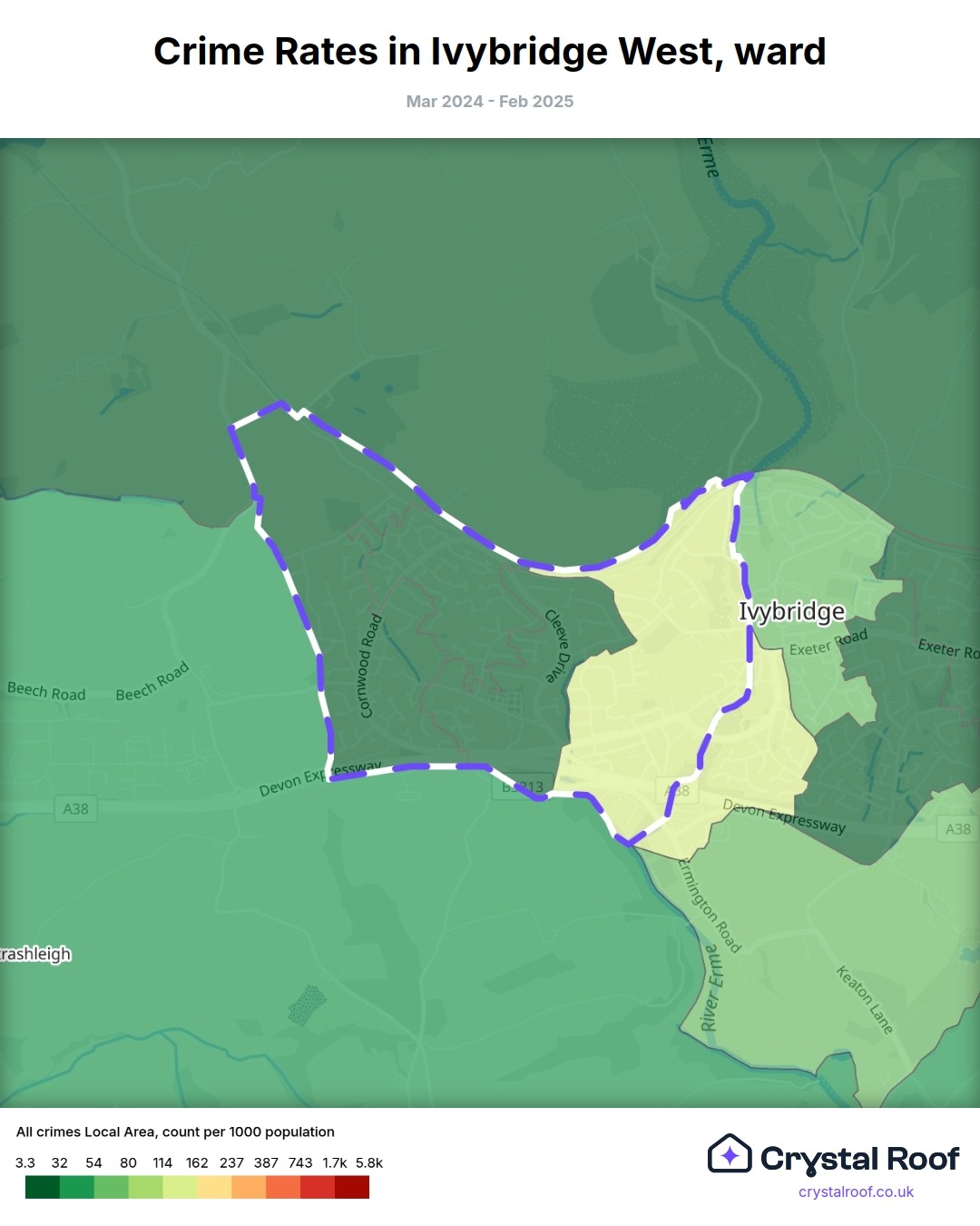 Ivybridge West, (ward) includes areas with the following crime ratings (see map):