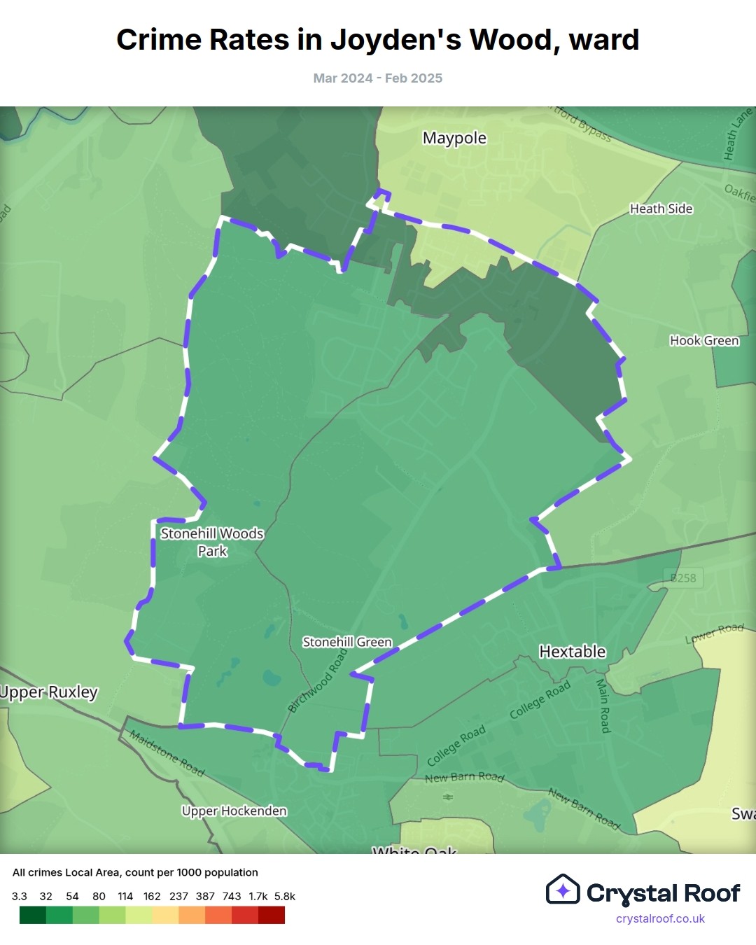 Joyden's Wood, (ward) includes areas with the following crime ratings (see map):