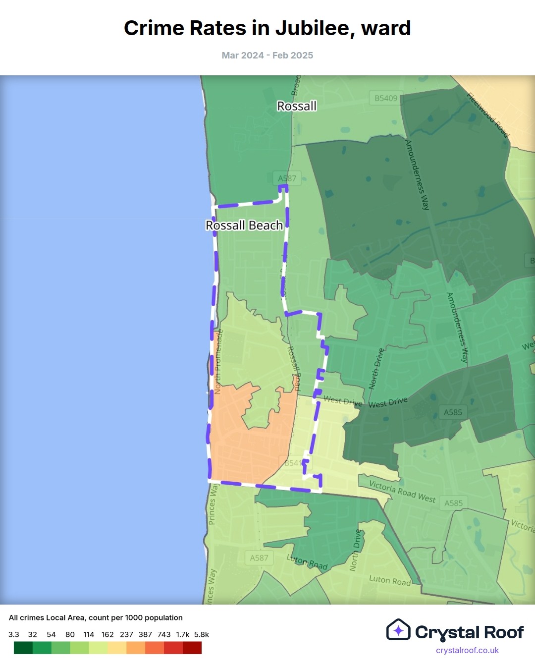 Jubilee, (ward) includes areas with the following crime ratings (see map):
