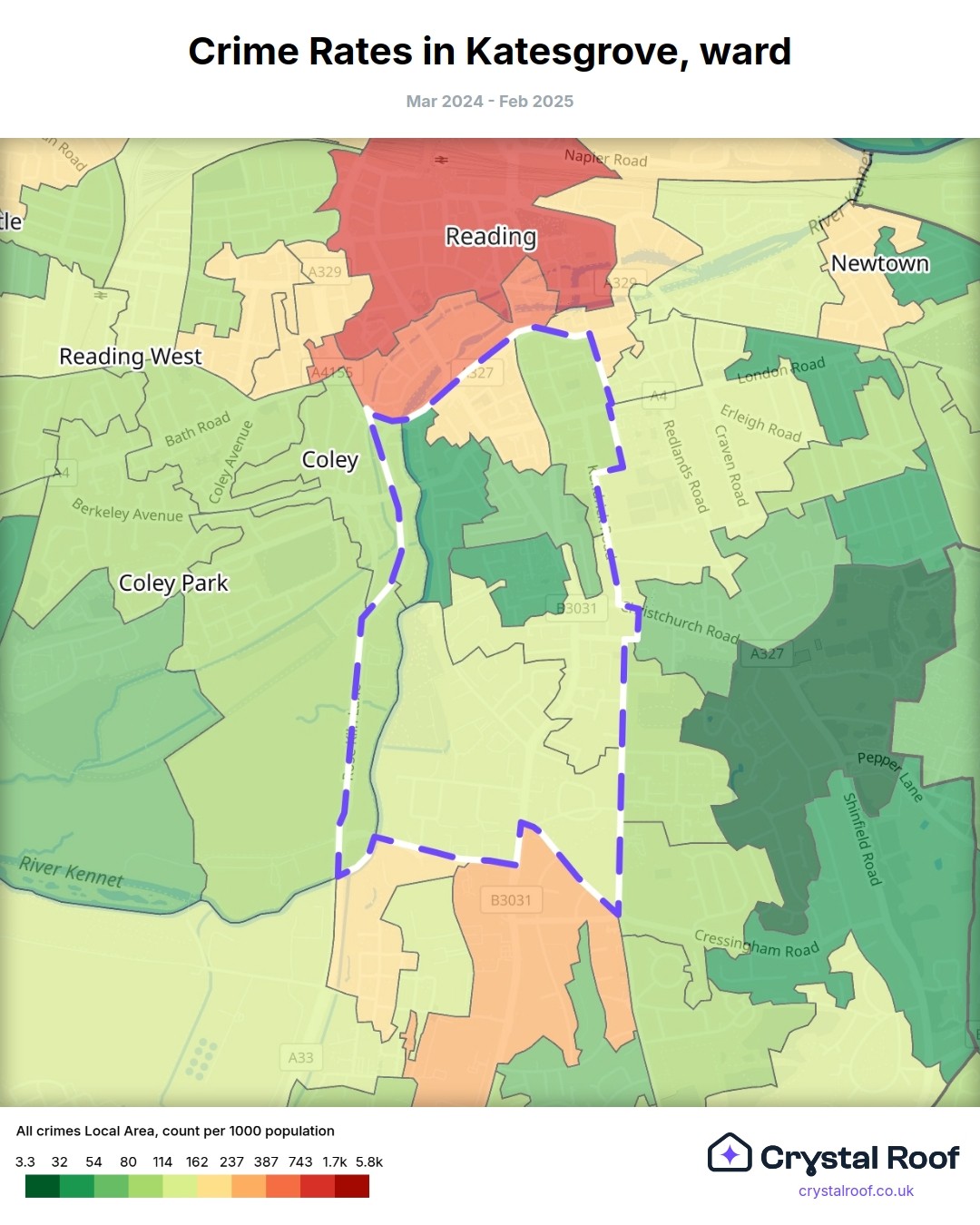 Katesgrove, (ward) includes areas with the following crime ratings (see map):