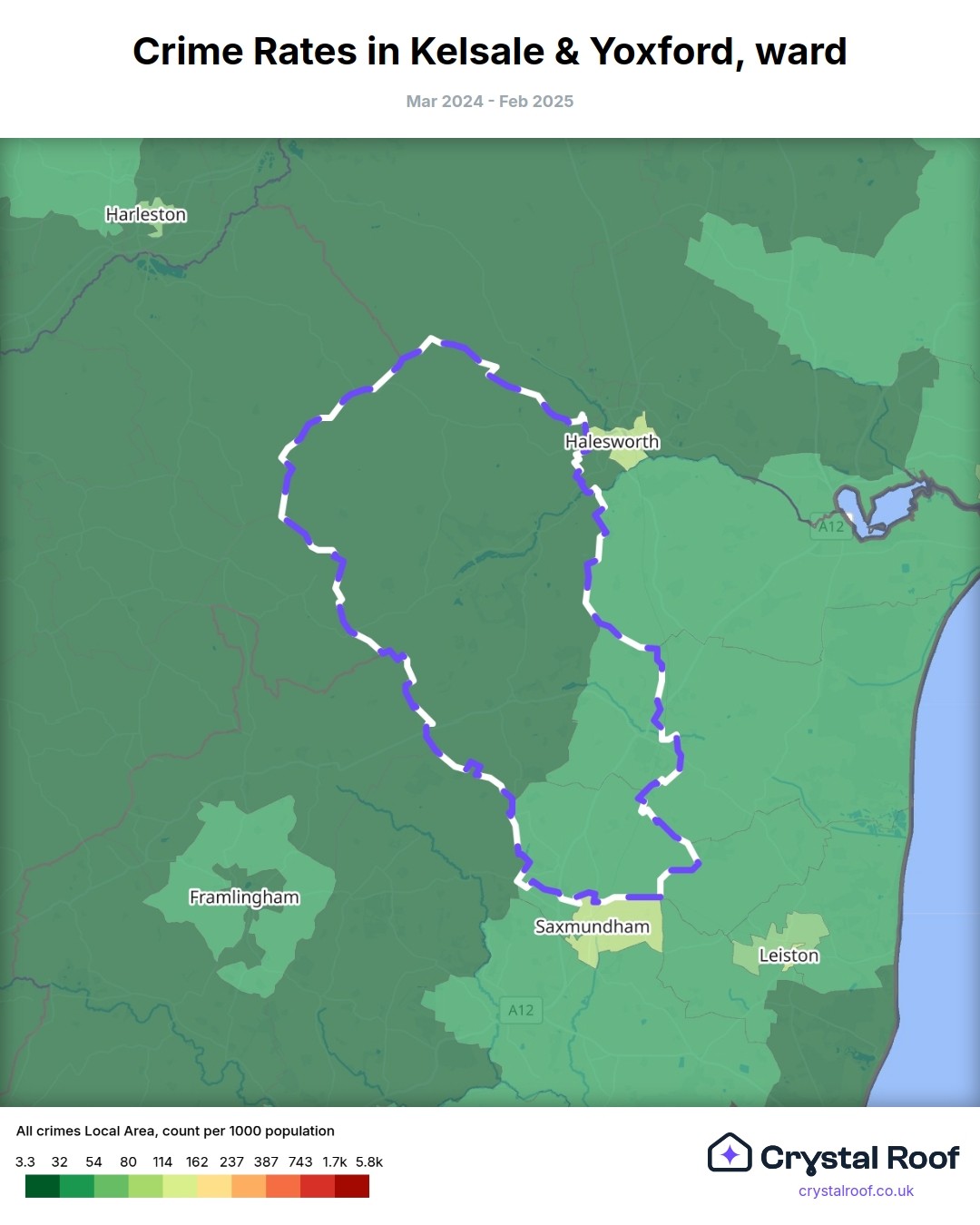 Kelsale & Yoxford, (ward) includes areas with the following crime ratings (see map):