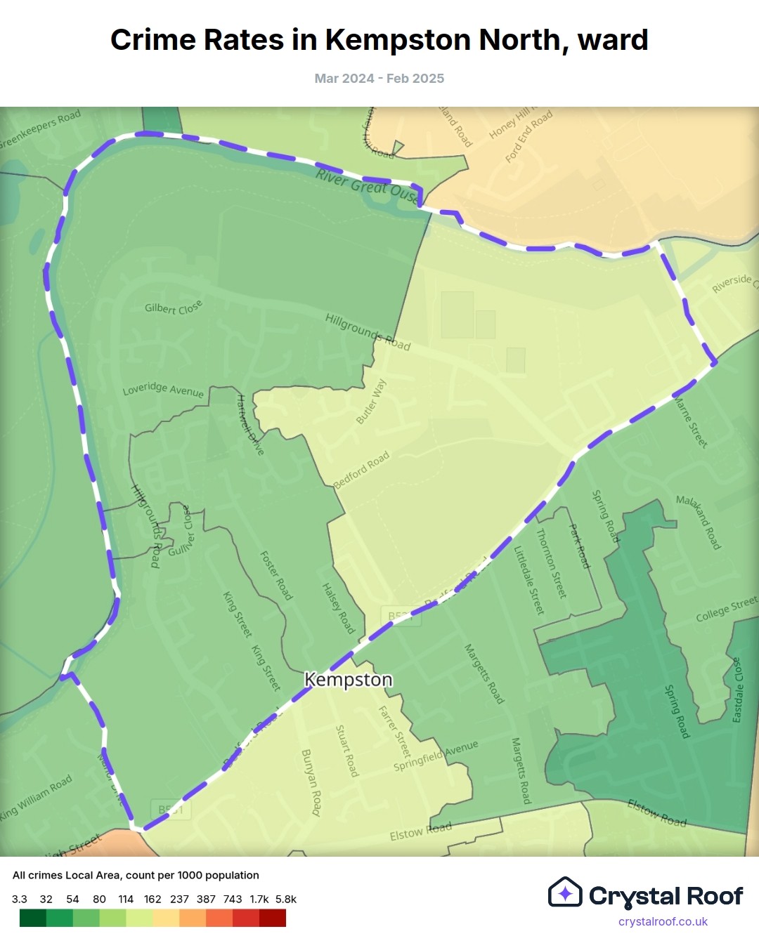 Kempston North, (ward) includes areas with the following crime ratings (see map):