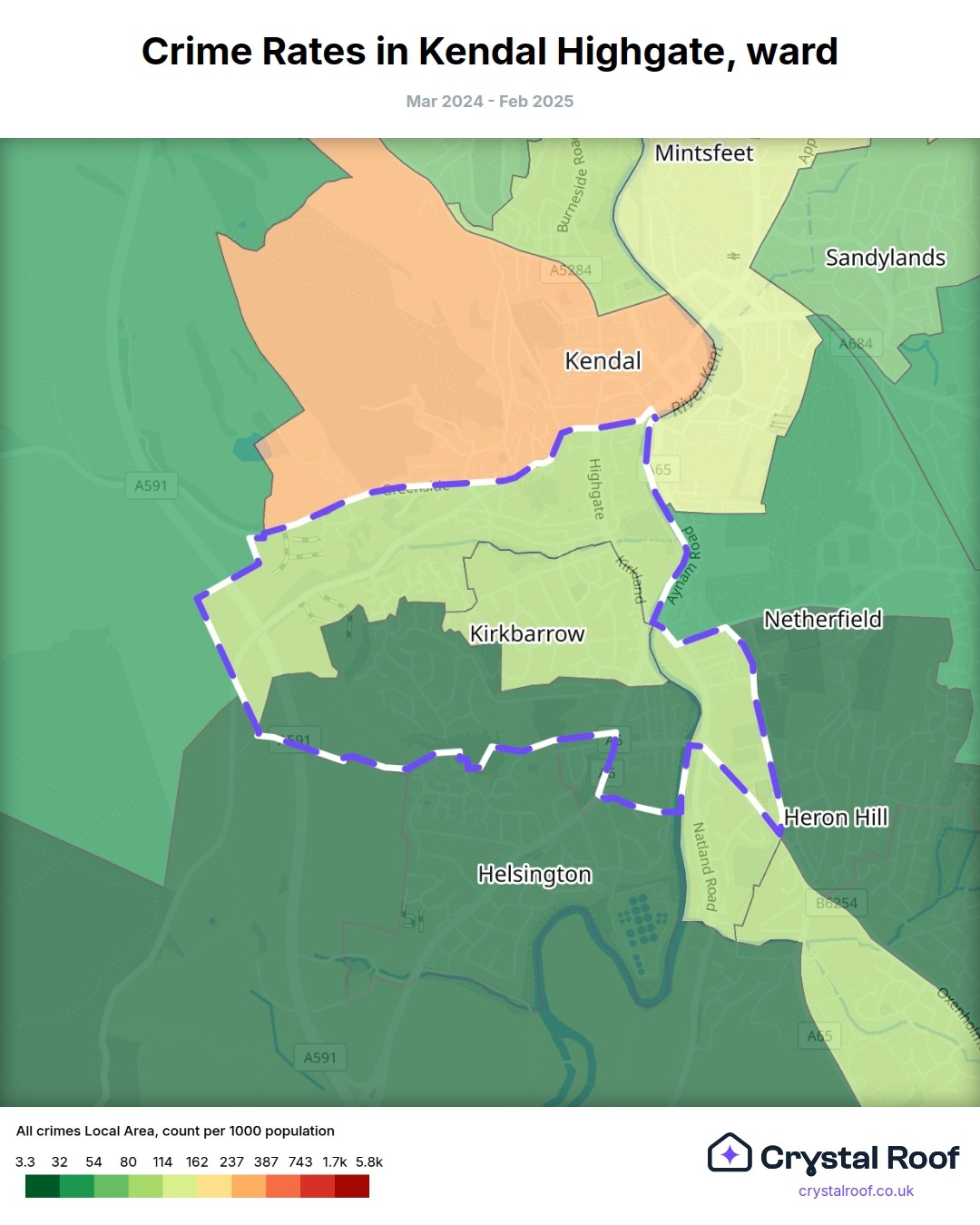 Kendal Highgate, (ward) includes areas with the following crime ratings (see map):