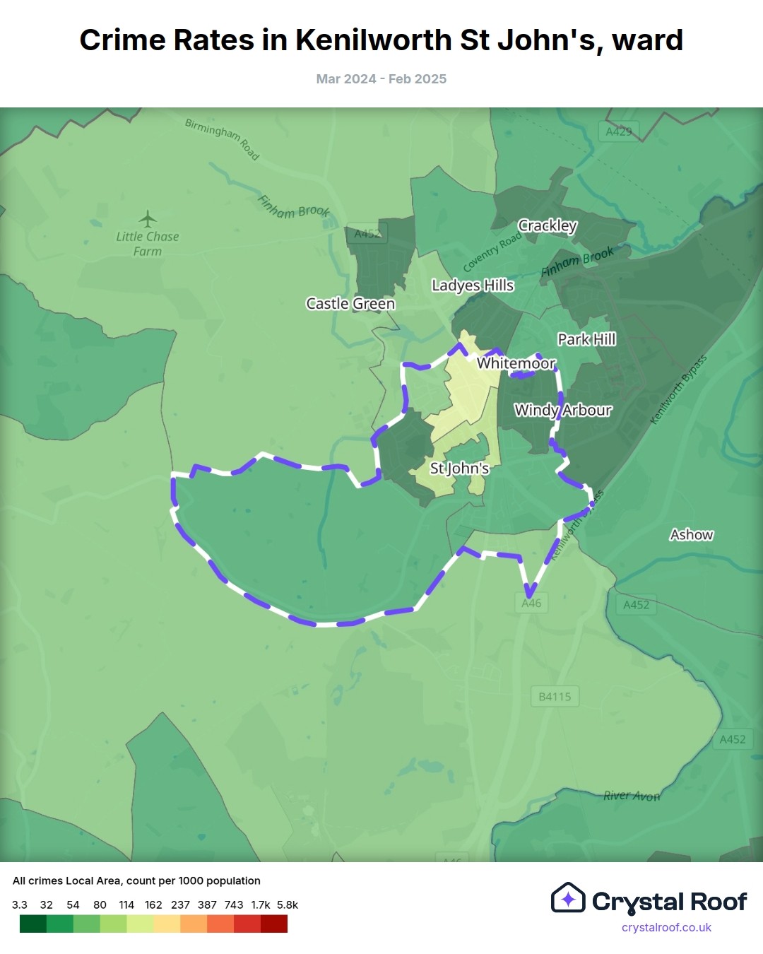 Kenilworth St John's, (ward) includes areas with the following crime ratings (see map):