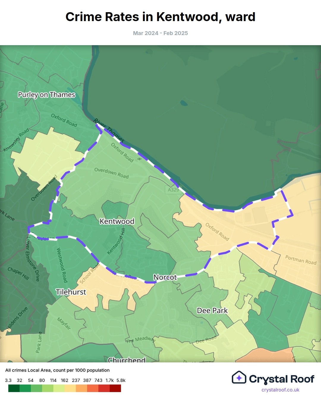 Kentwood, (ward) includes areas with the following crime ratings (see map):