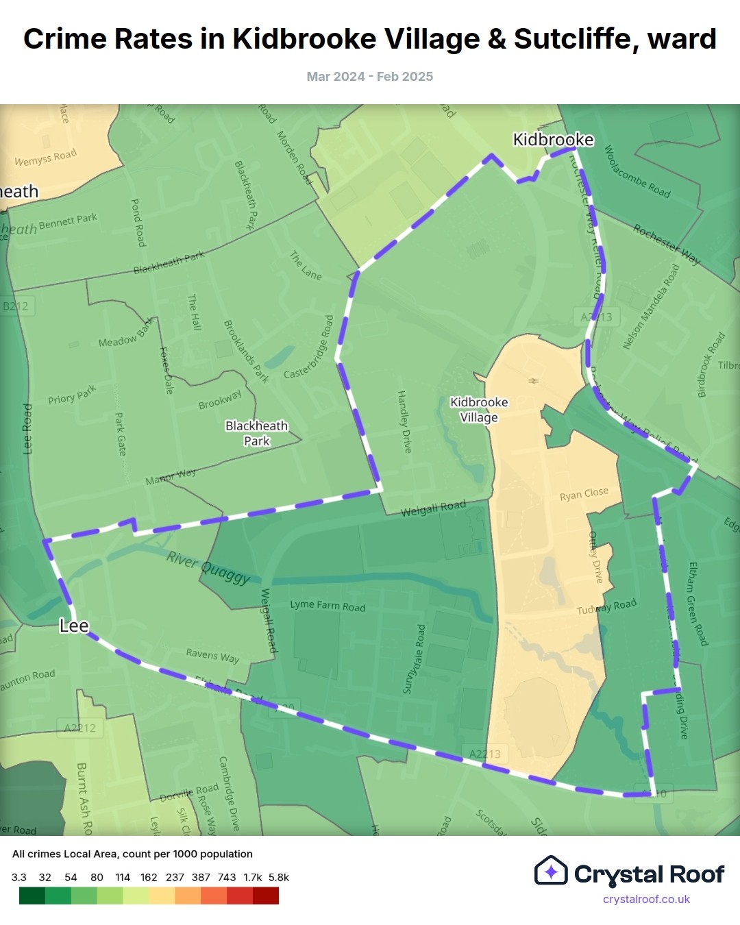 Kidbrooke Village & Sutcliffe, (ward) includes areas with the following crime ratings (see map):