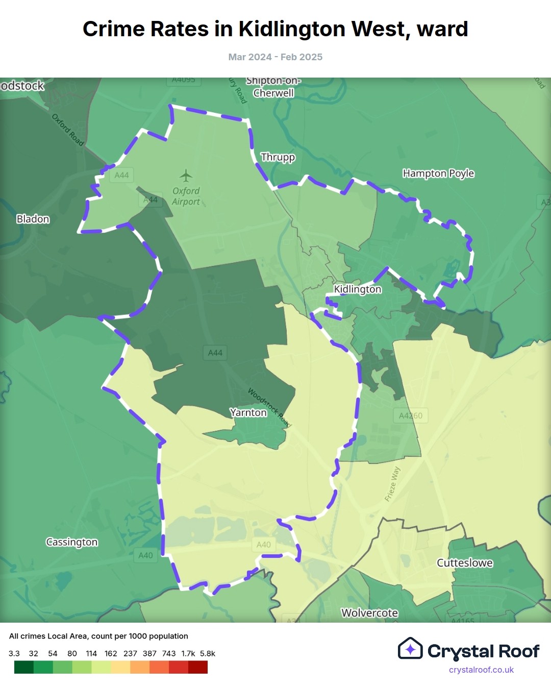 Kidlington West, (ward) includes areas with the following crime ratings (see map):