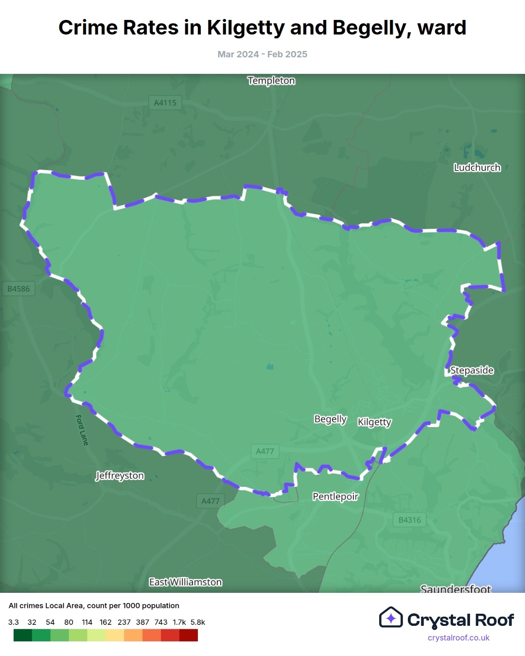 Kilgetty and Begelly, (ward) includes areas with the following crime ratings (see map):