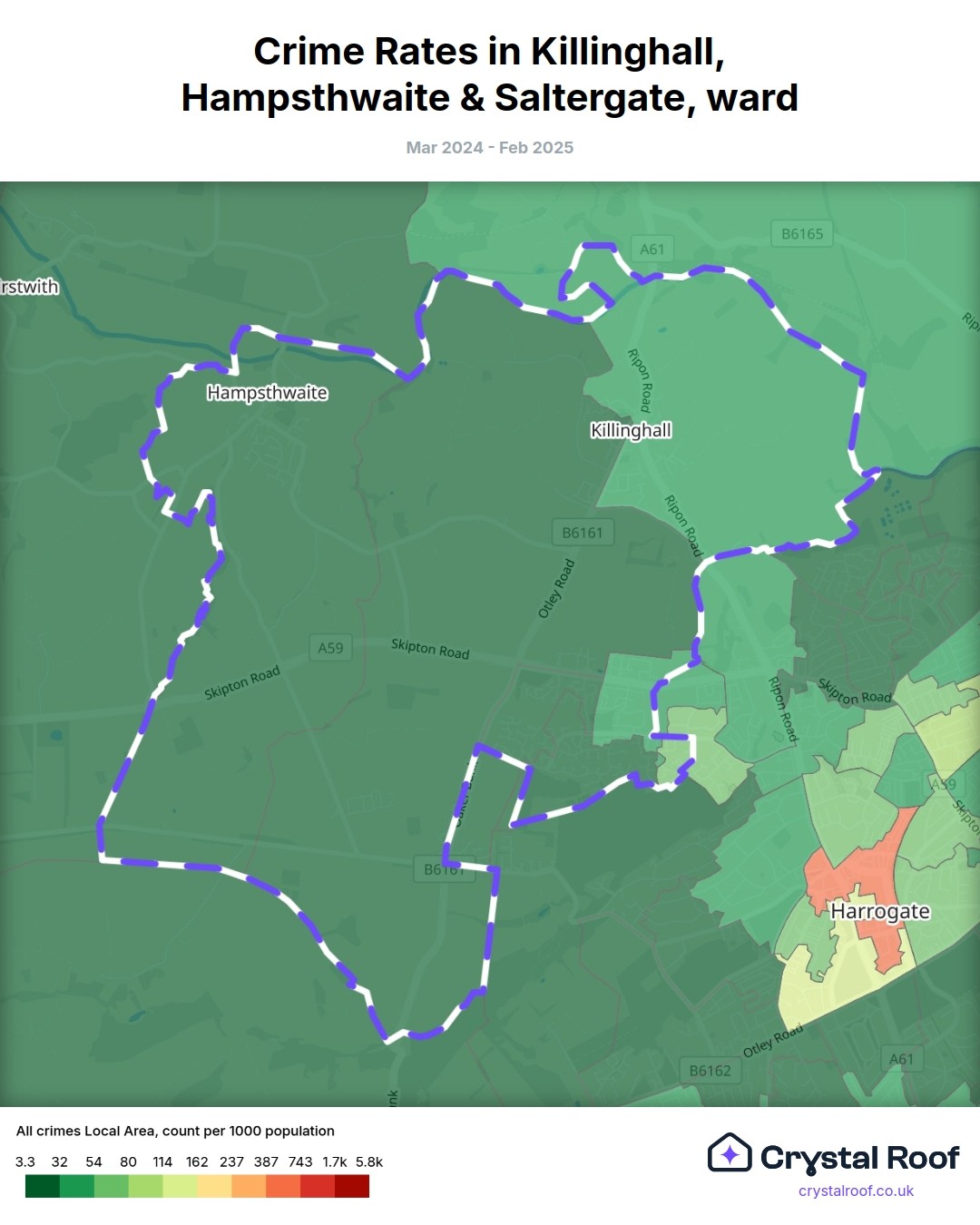 Killinghall, Hampsthwaite & Saltergate, (ward) includes areas with the following crime ratings (see map):