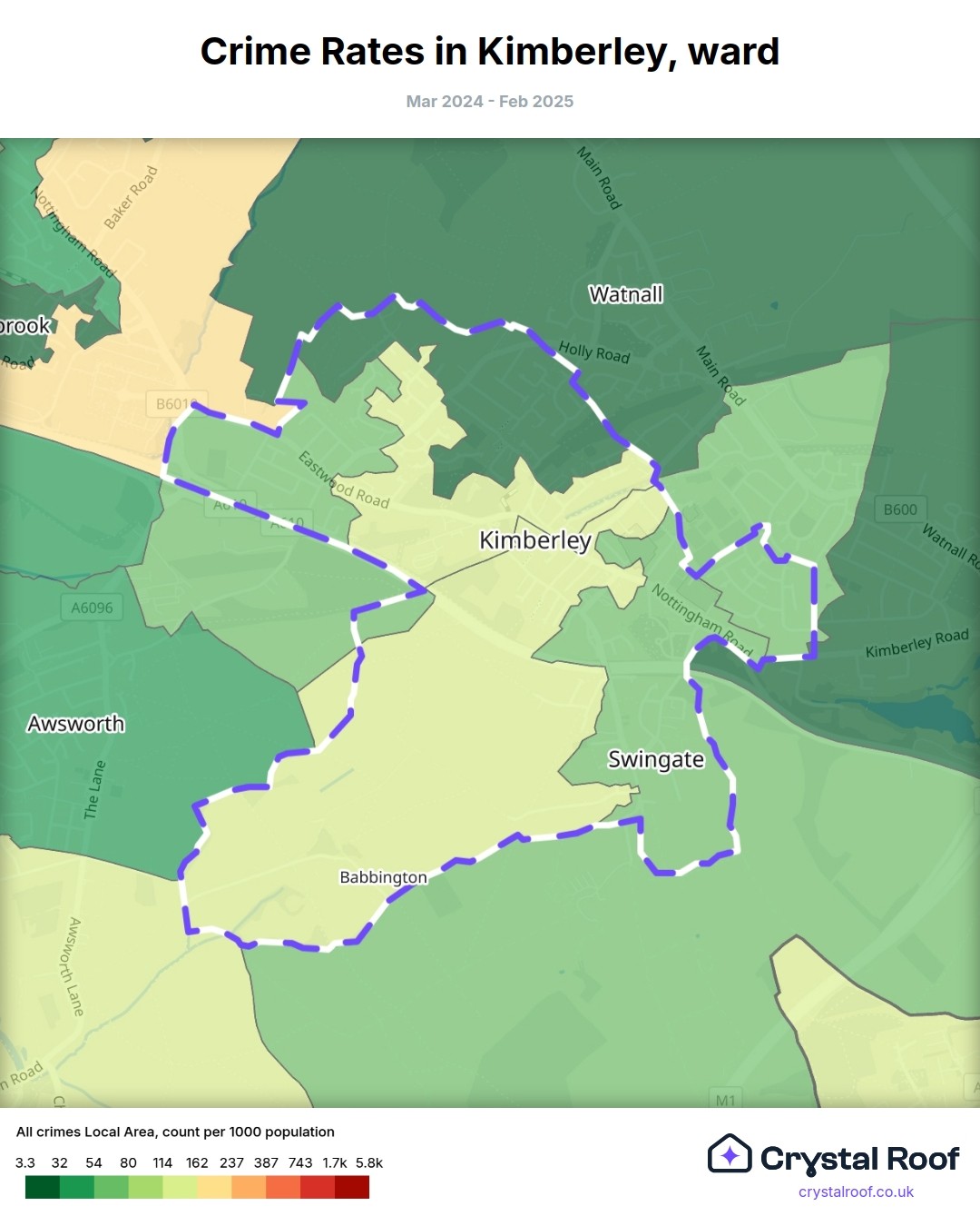 Kimberley, (ward) includes areas with the following crime ratings (see map):