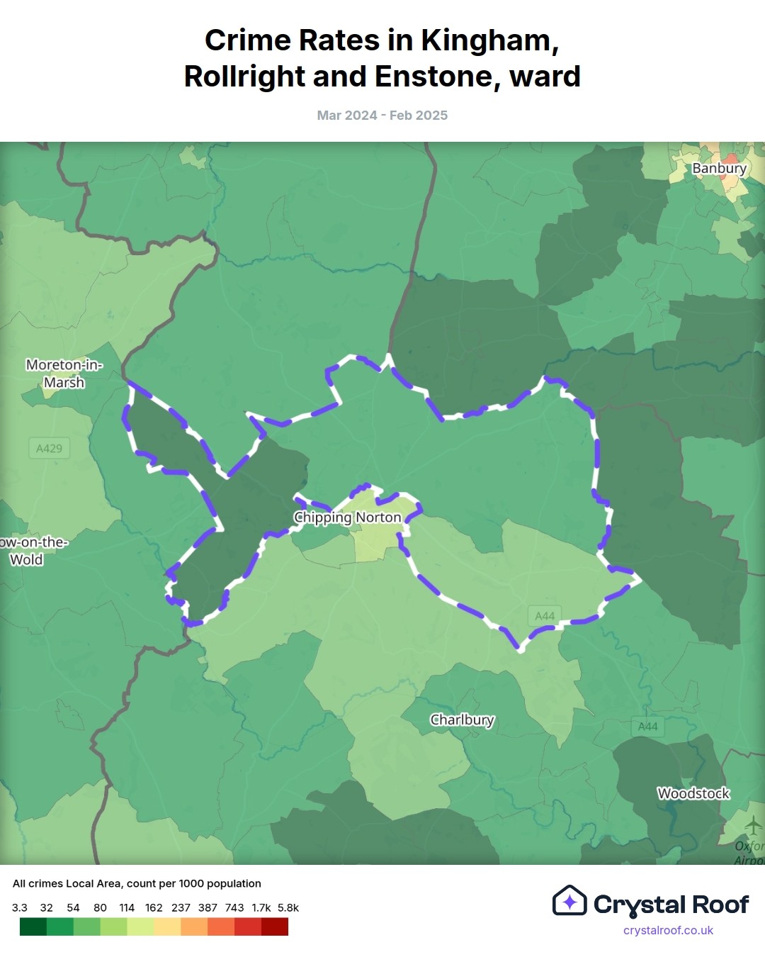 Kingham, Rollright and Enstone, (ward) includes areas with the following crime ratings (see map):