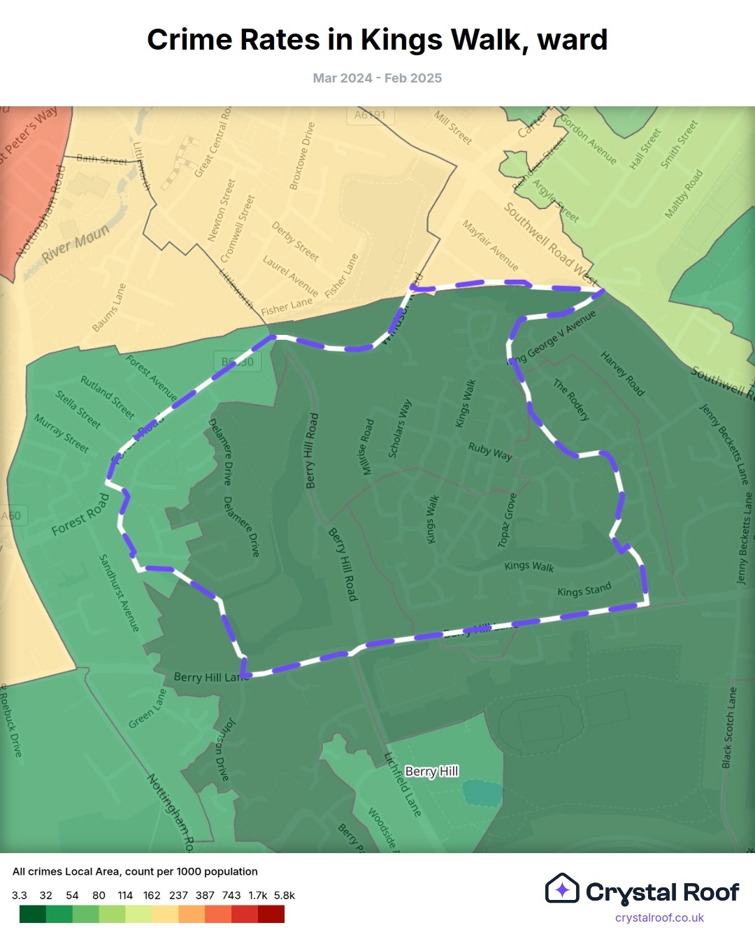 Kings Walk, (ward) includes areas with the following crime ratings (see map):