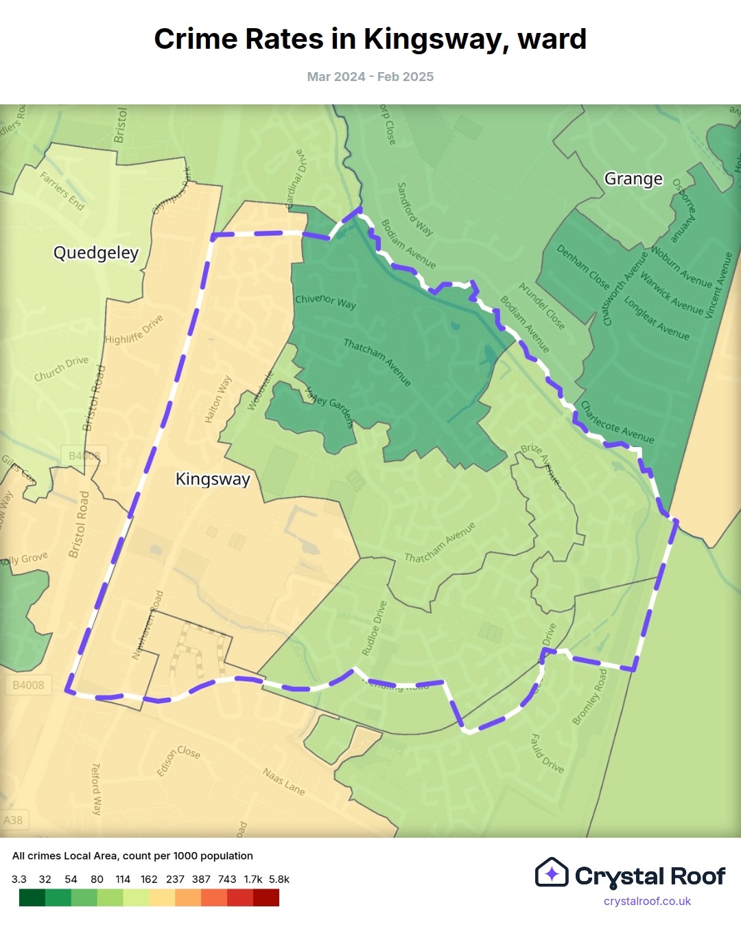 Kingsway, (ward) includes areas with the following crime ratings (see map):