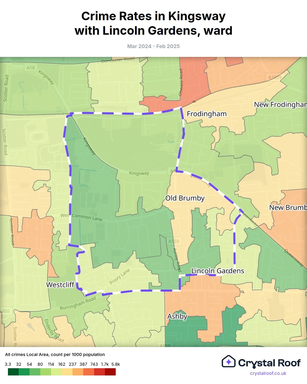 Kingsway with Lincoln Gardens, (ward) includes areas with the following crime ratings (see map):
