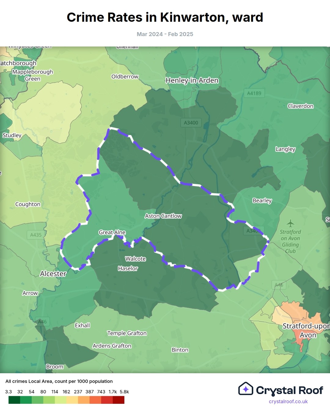 Kinwarton, (ward) includes areas with the following crime ratings (see map):