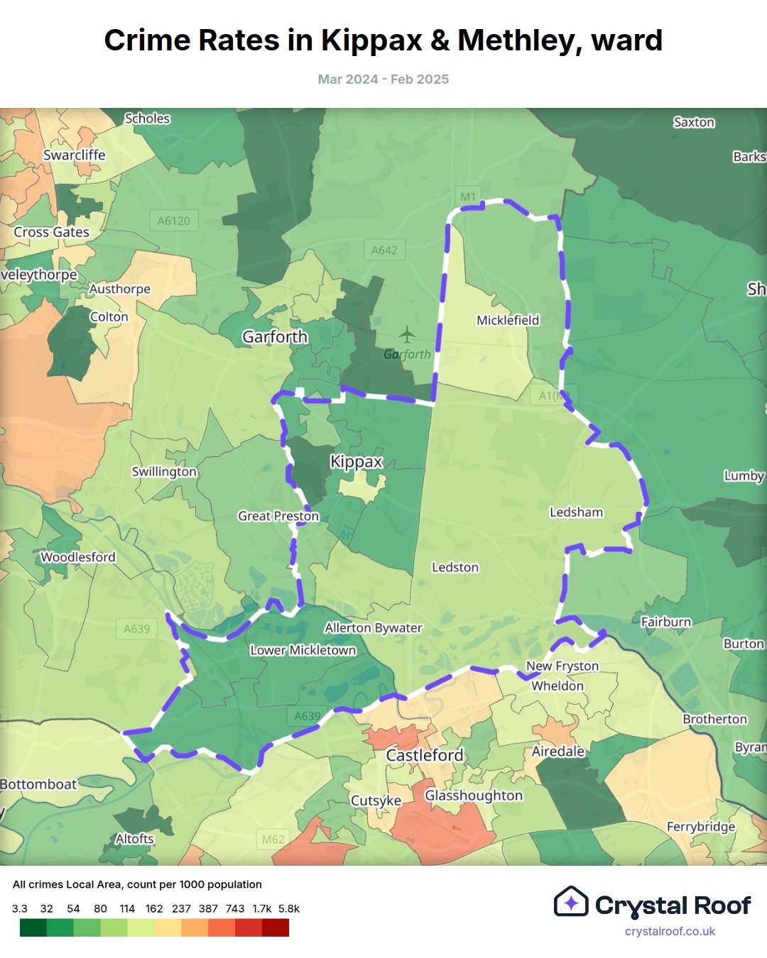 Kippax & Methley, (ward) includes areas with the following crime ratings (see map):
