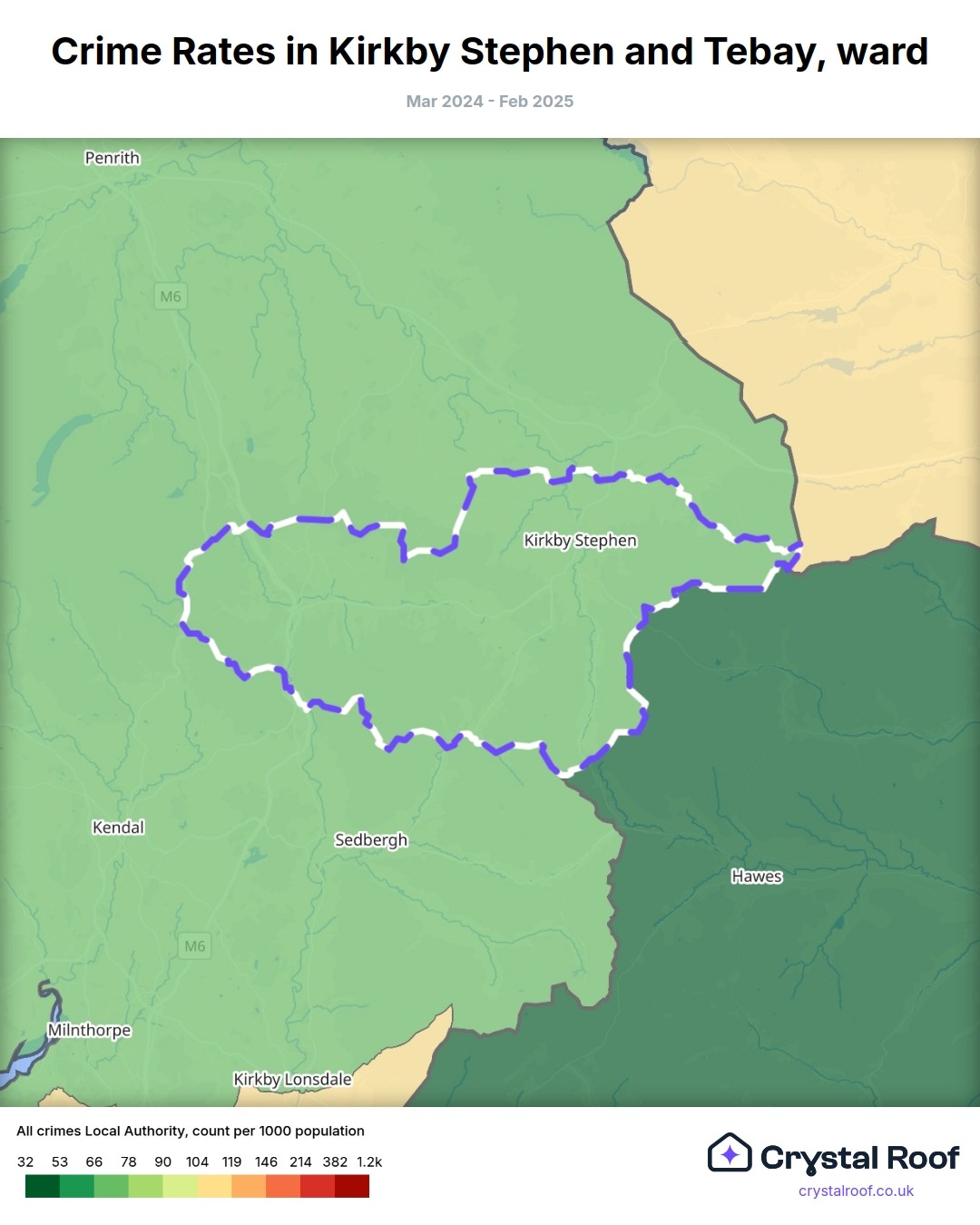 Kirkby Stephen and Tebay, (ward) includes areas with the following crime ratings (see map):