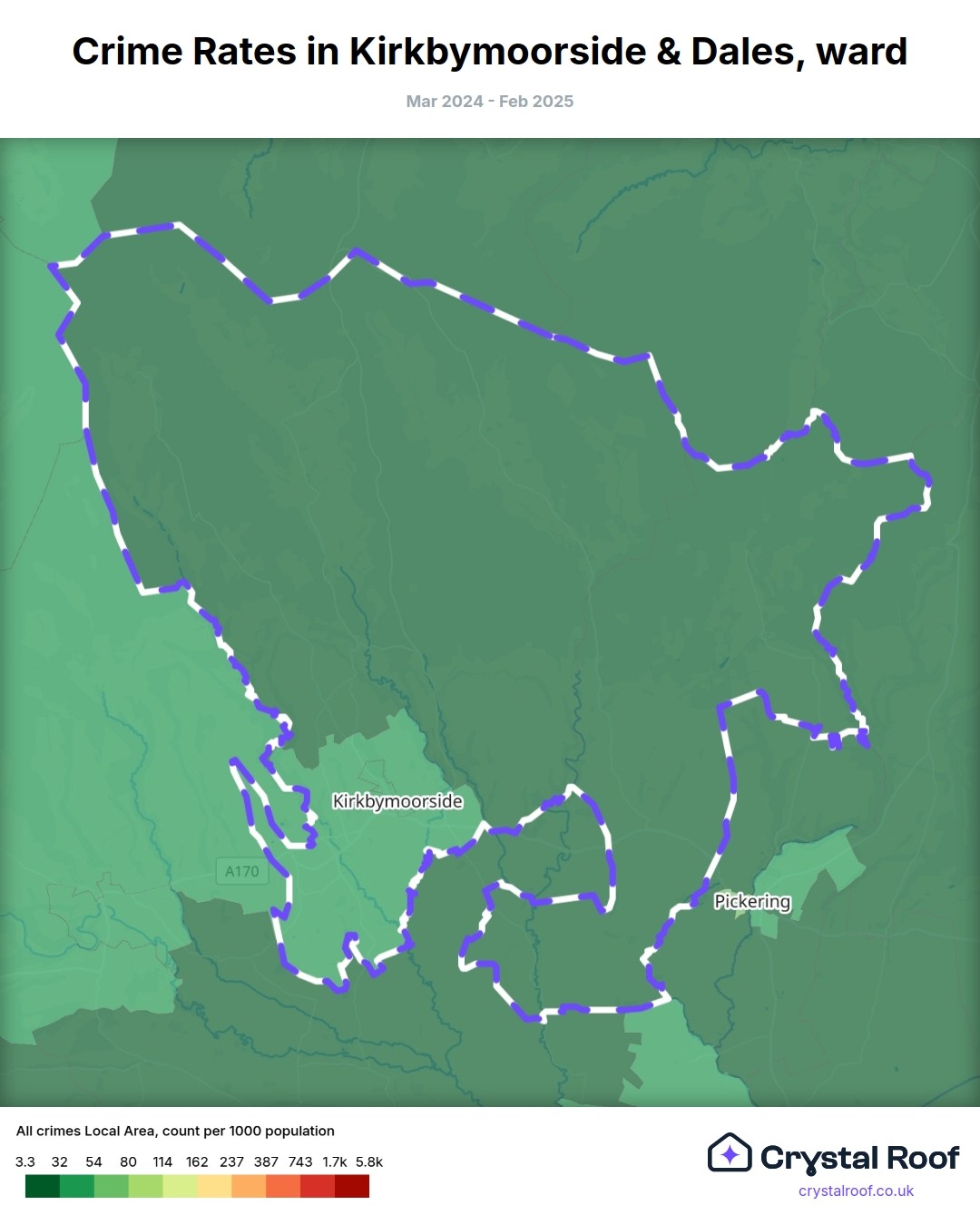 Kirkbymoorside & Dales, (ward) includes areas with the following crime ratings (see map):