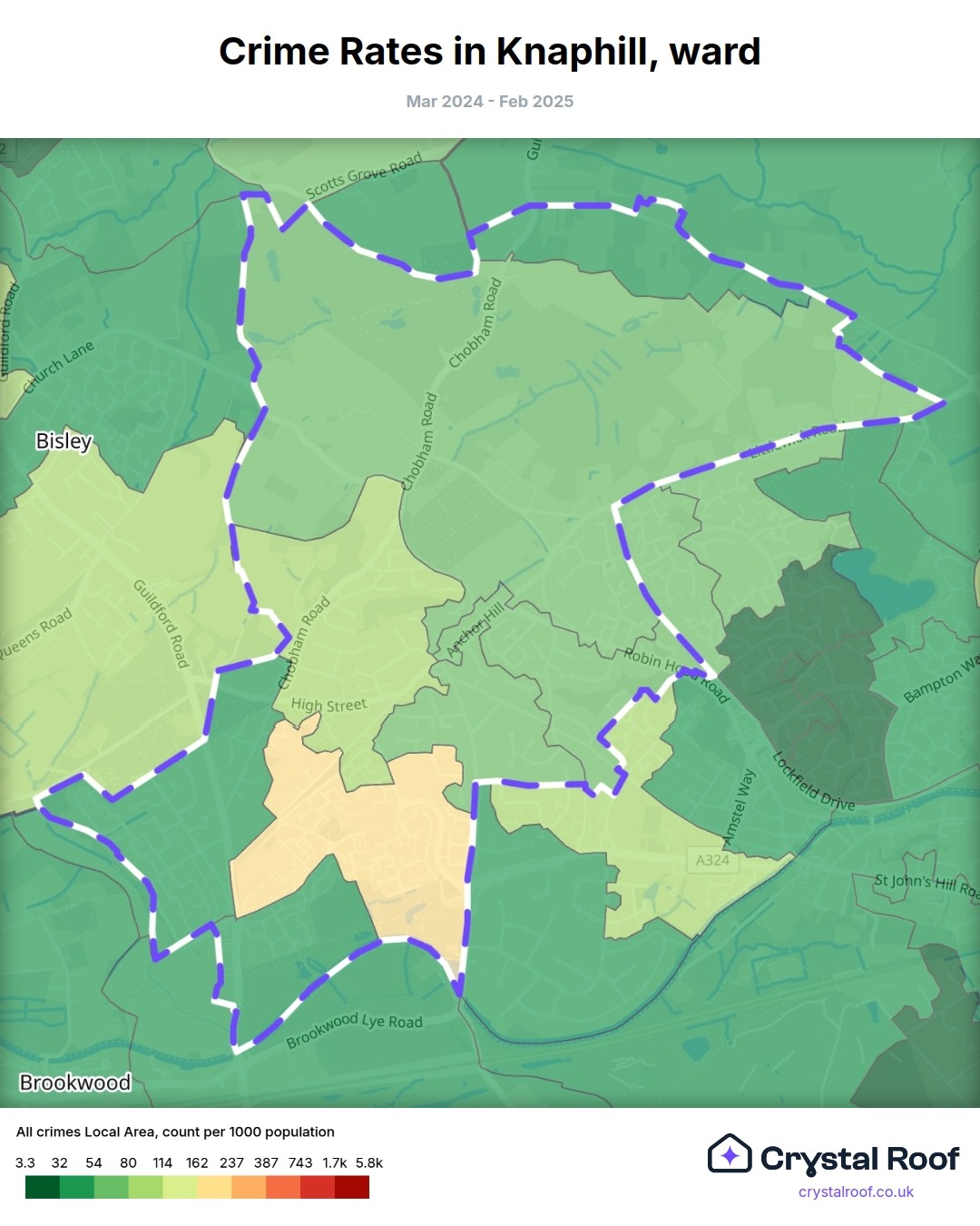 Knaphill, (ward) includes areas with the following crime ratings (see map):