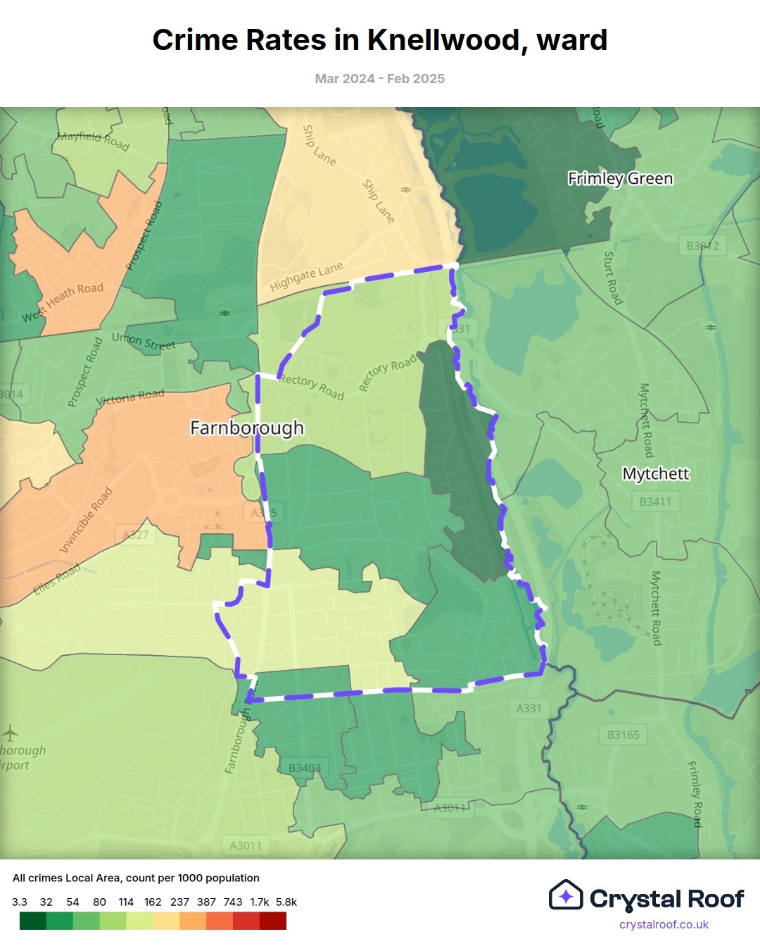 Knellwood, (ward) includes areas with the following crime ratings (see map):