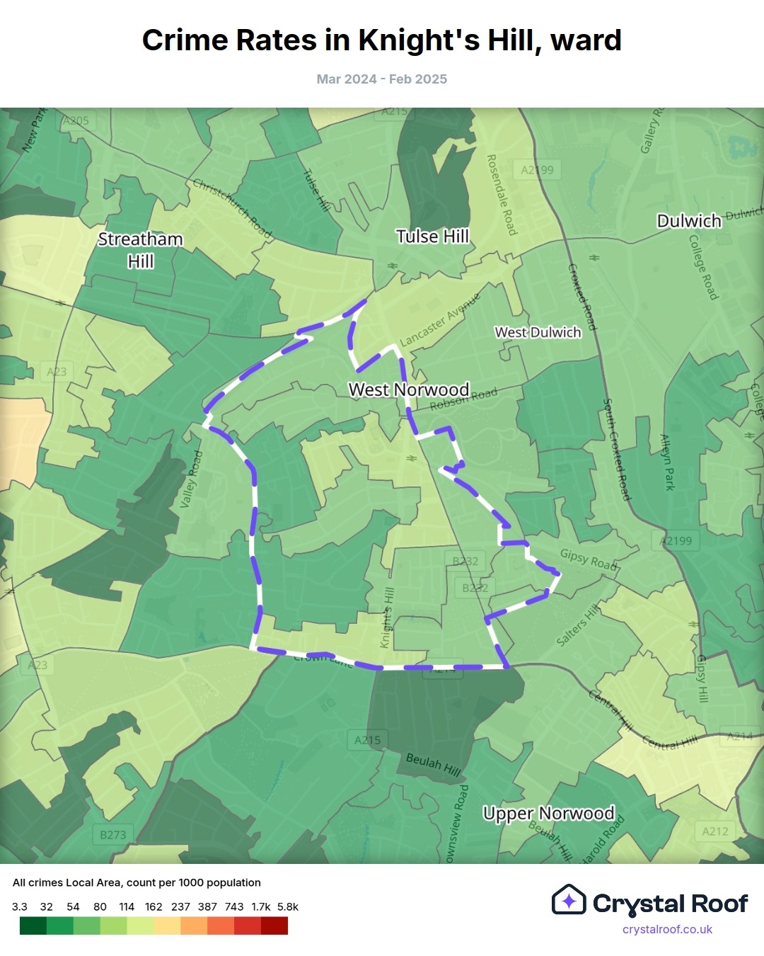 Knight's Hill, (ward) includes areas with the following crime ratings (see map):