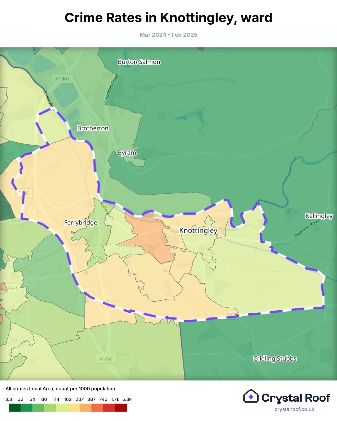 Knottingley, (ward) includes areas with the following crime ratings (see map):