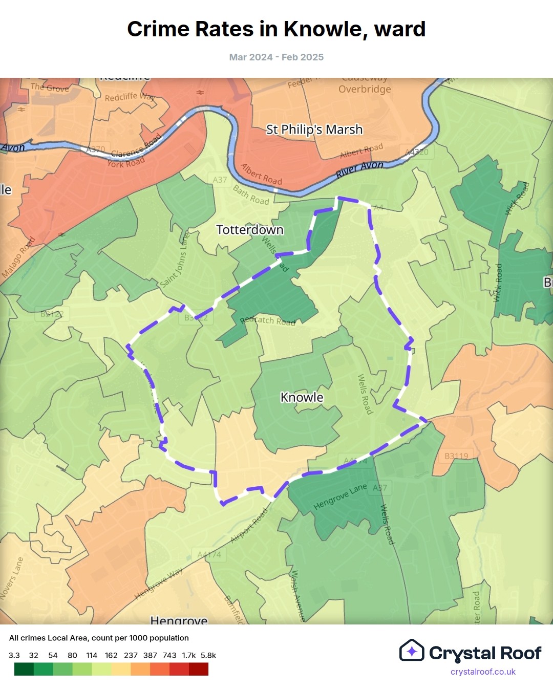 Knowle, (ward) includes areas with the following crime ratings (see map):