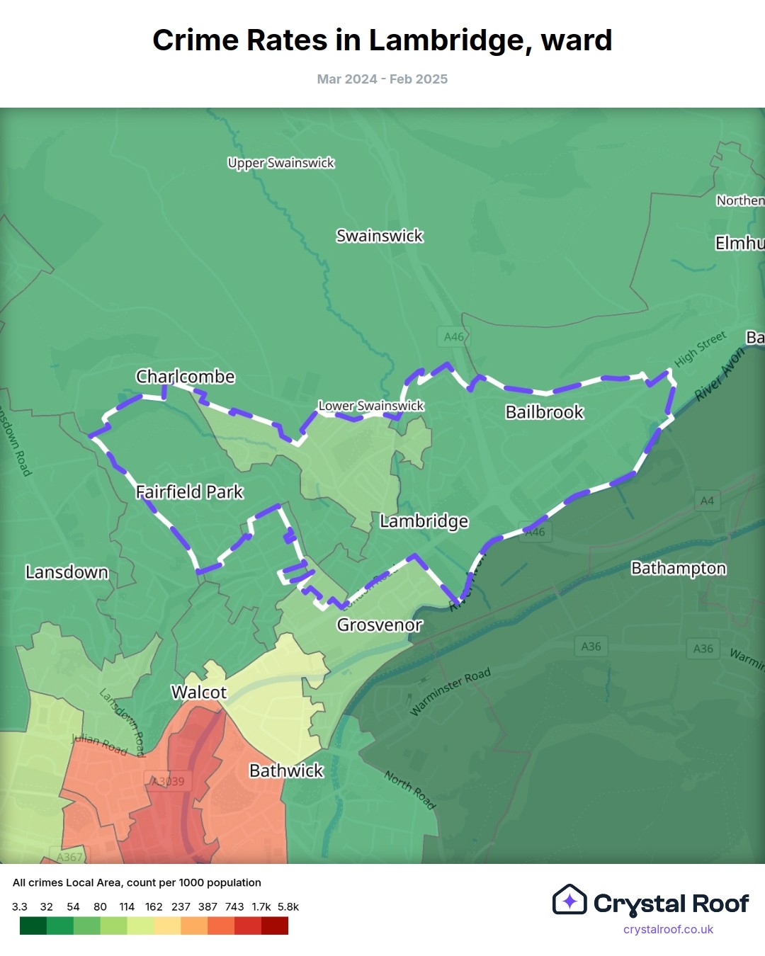 Lambridge, (ward) includes areas with the following crime ratings (see map):