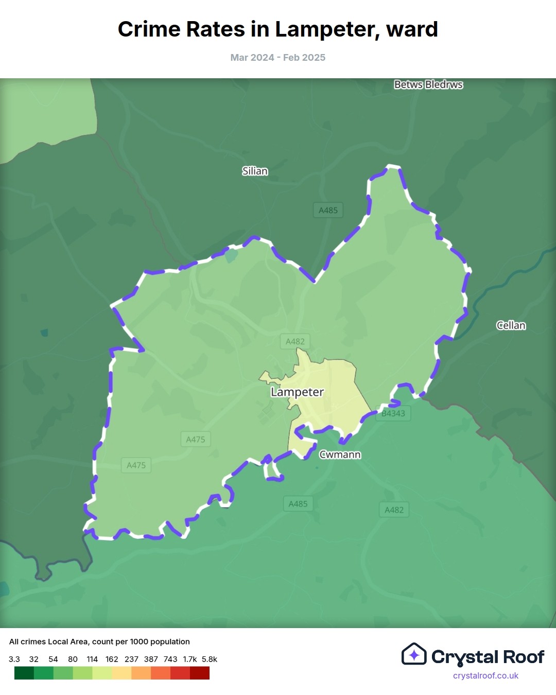 Lampeter, (ward) includes areas with the following crime ratings (see map):