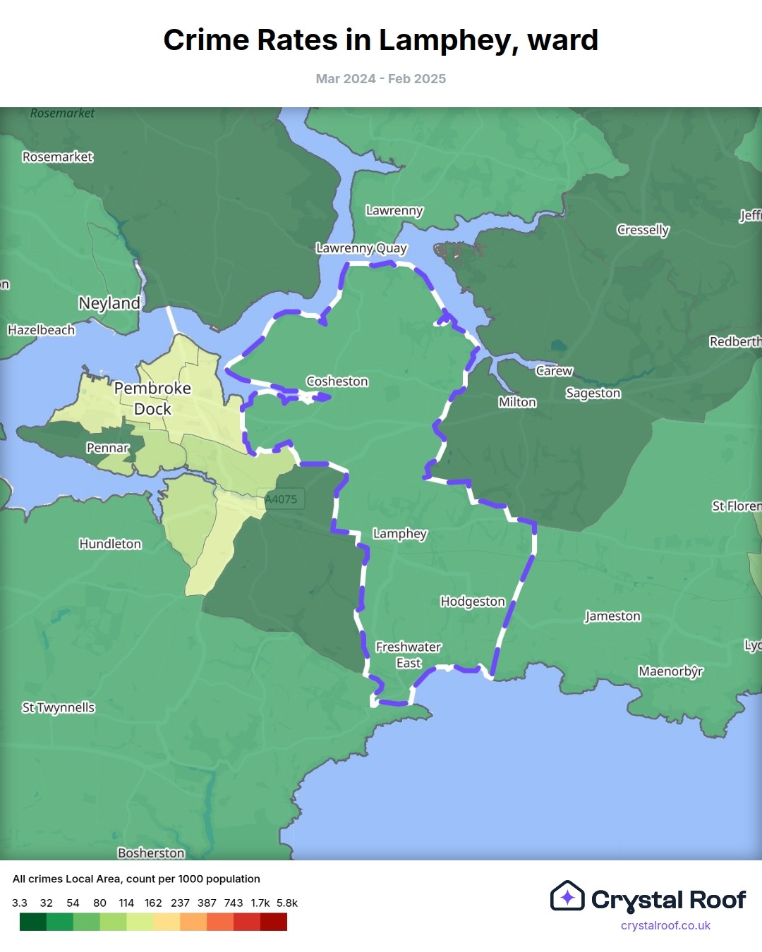 Lamphey, (ward) includes areas with the following crime ratings (see map):