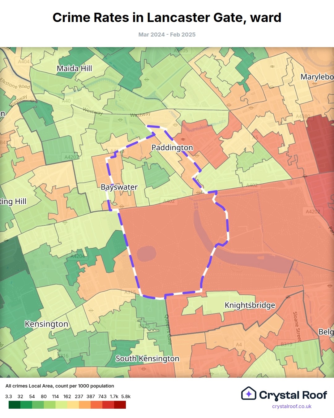 Lancaster Gate, (ward) includes areas with the following crime ratings (see map):