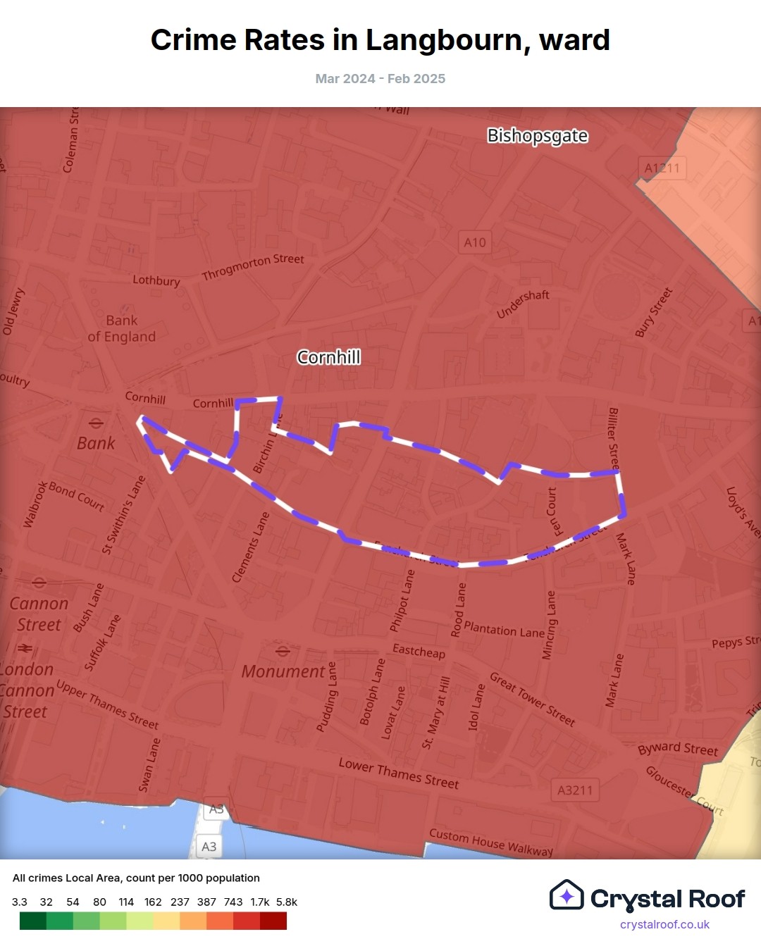 Langbourn, (ward) includes areas with the following crime ratings (see map):