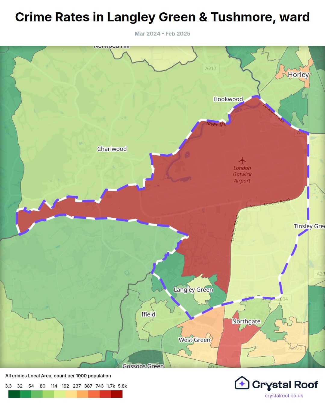Langley Green & Tushmore, (ward) includes areas with the following crime ratings (see map):