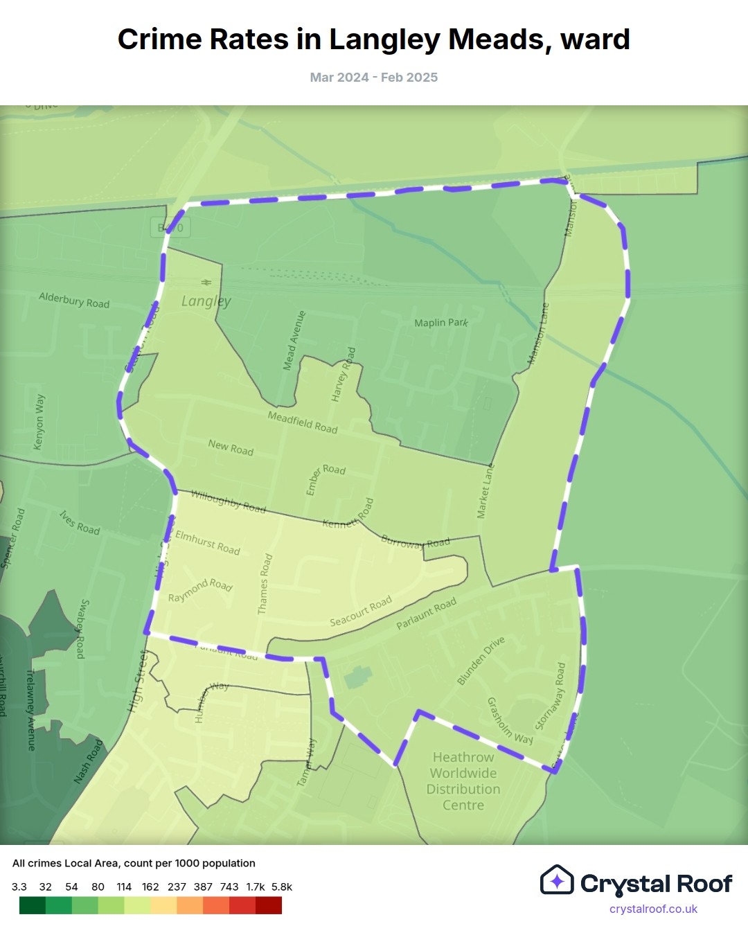 Langley Meads, (ward) includes areas with the following crime ratings (see map):