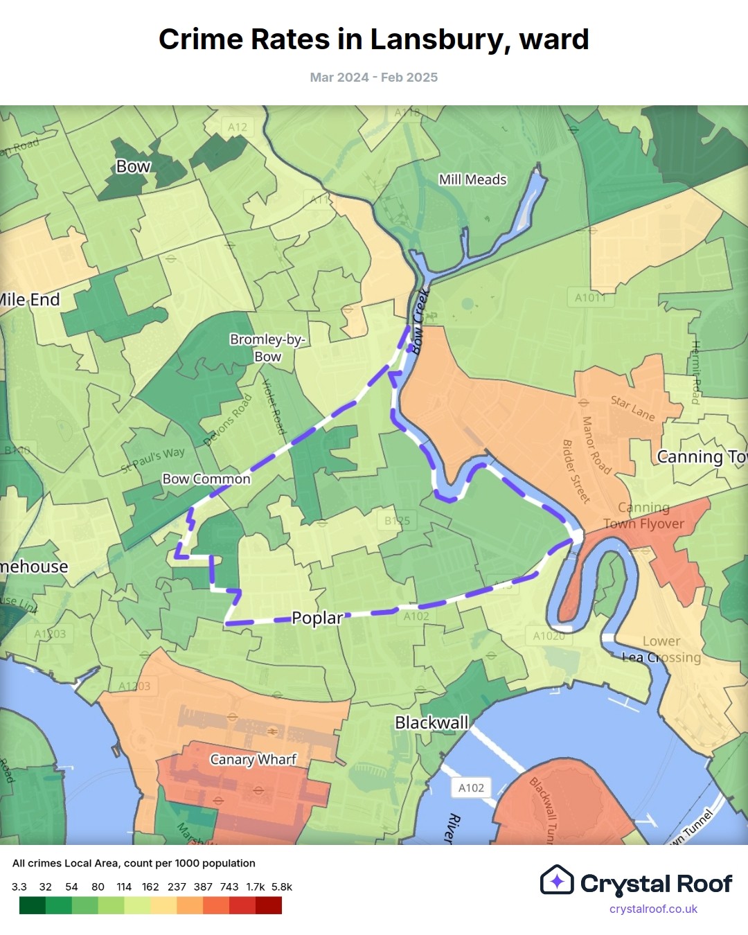 Lansbury, (ward) includes areas with the following crime ratings (see map):