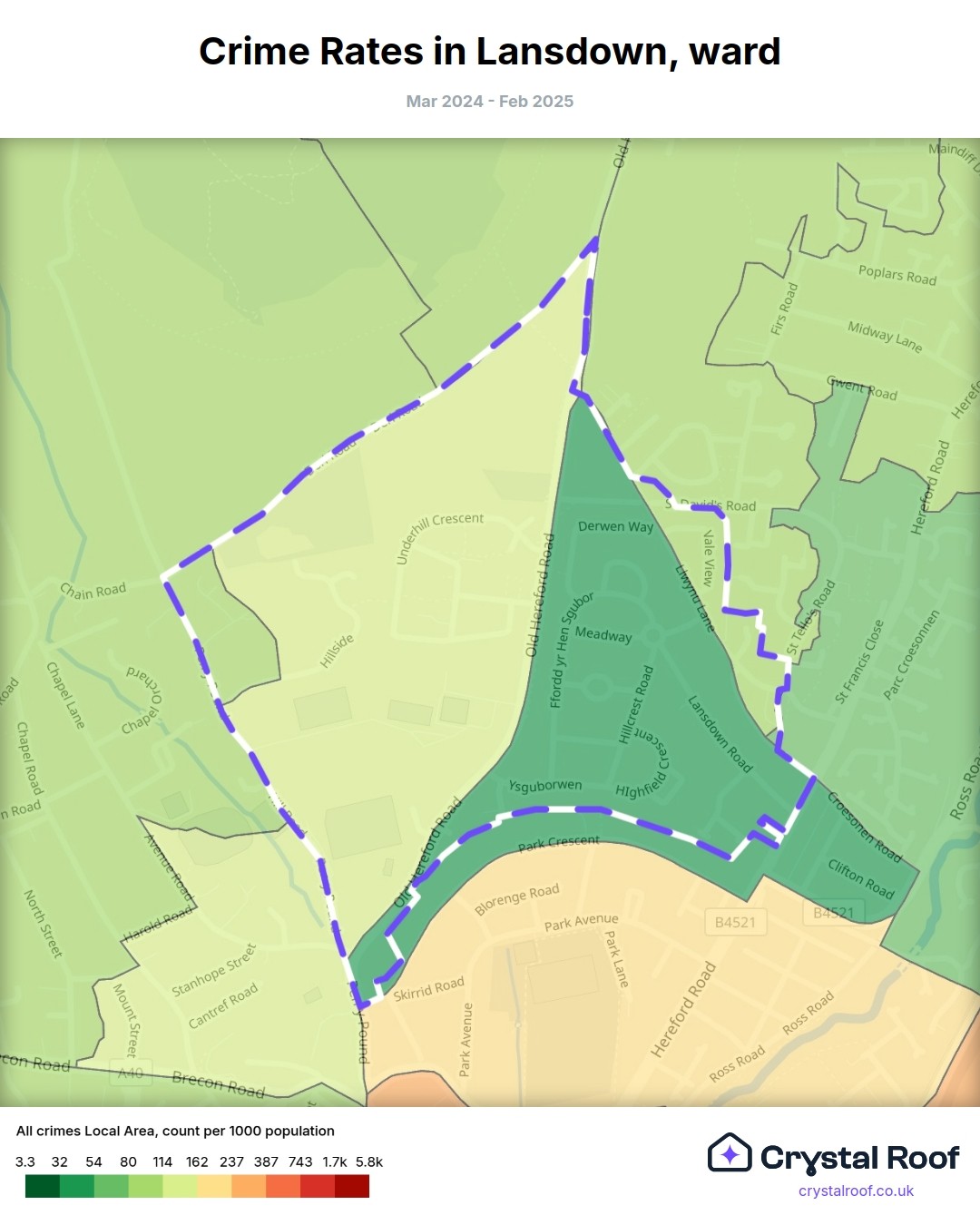 Lansdown, (ward) includes areas with the following crime ratings (see map):