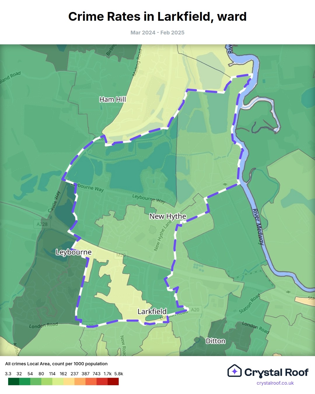 Larkfield, (ward) includes areas with the following crime ratings (see map):