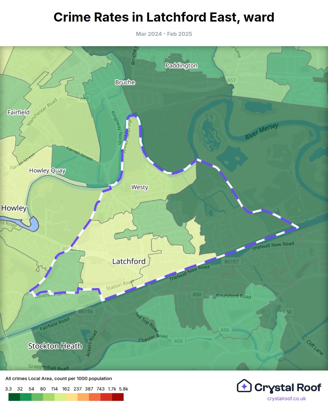 Latchford East, (ward) includes areas with the following crime ratings (see map):