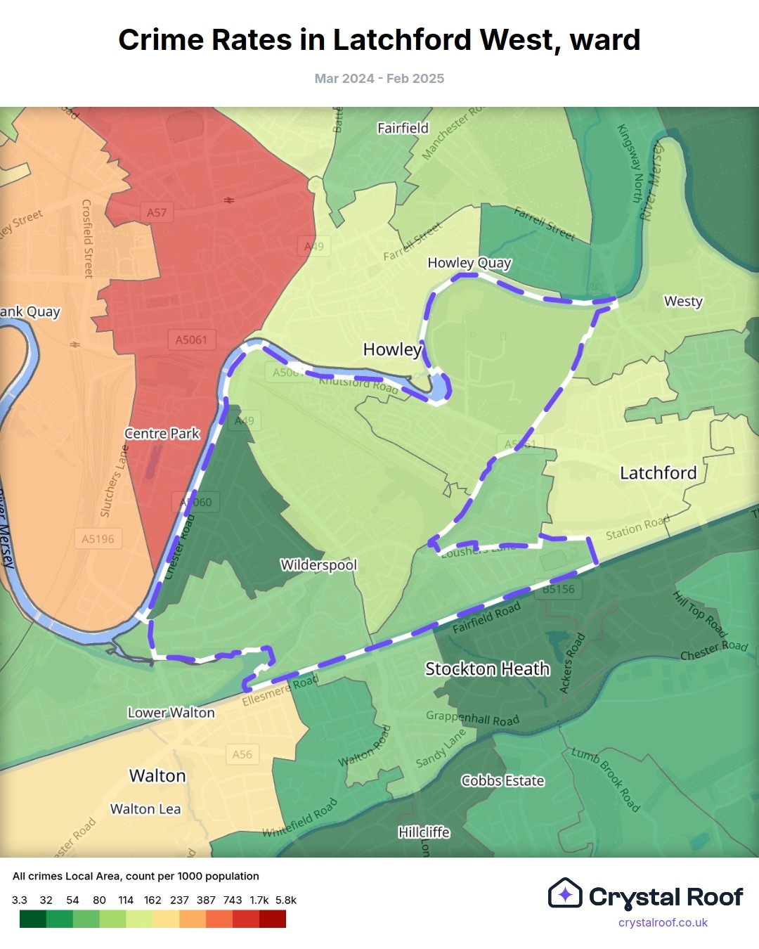 Latchford West, (ward) includes areas with the following crime ratings (see map):