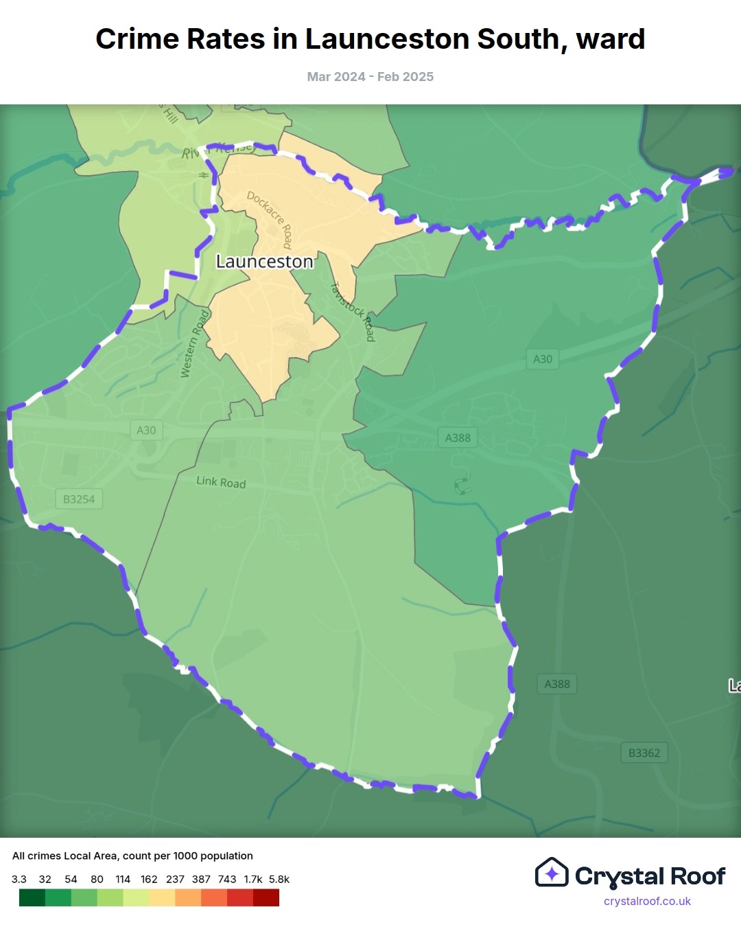 Launceston South, (ward) includes areas with the following crime ratings (see map):