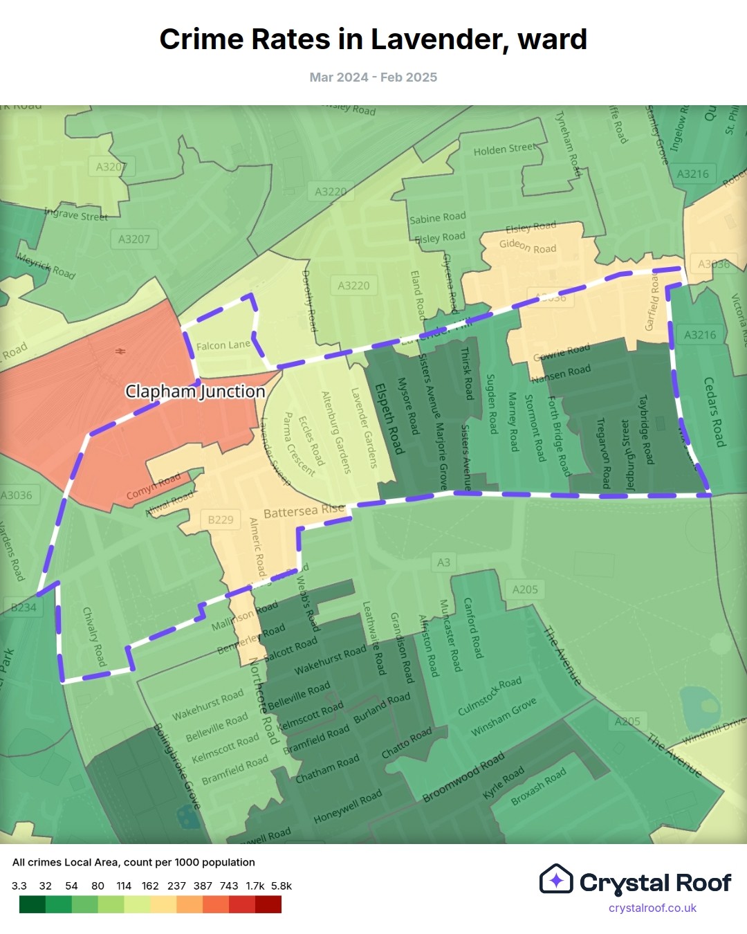 Lavender, (ward) includes areas with the following crime ratings (see map):