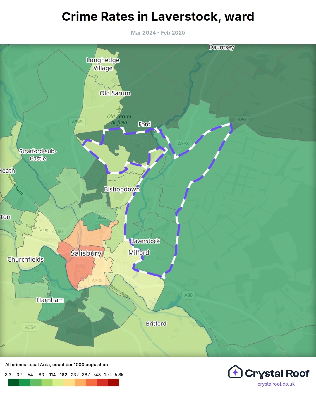 Laverstock, (ward) includes areas with the following crime ratings (see map):