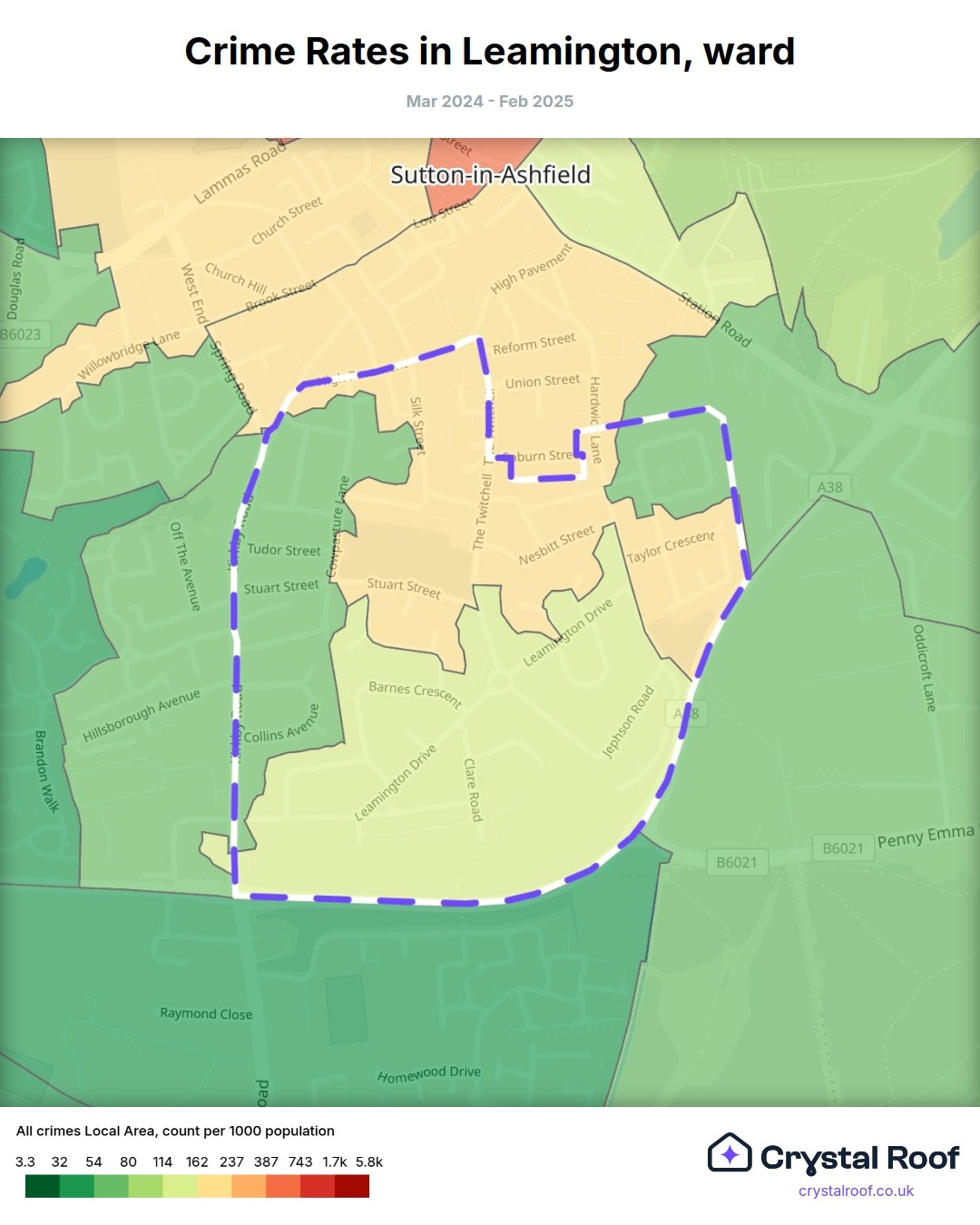 Leamington, (ward) includes areas with the following crime ratings (see map):