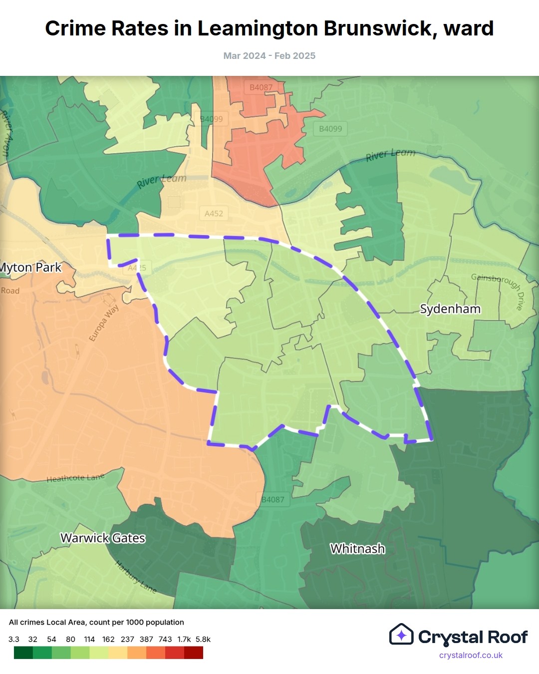 Leamington Brunswick, (ward) includes areas with the following crime ratings (see map):