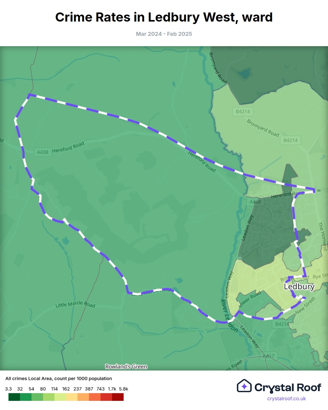 Ledbury West, (ward) includes areas with the following crime ratings (see map):