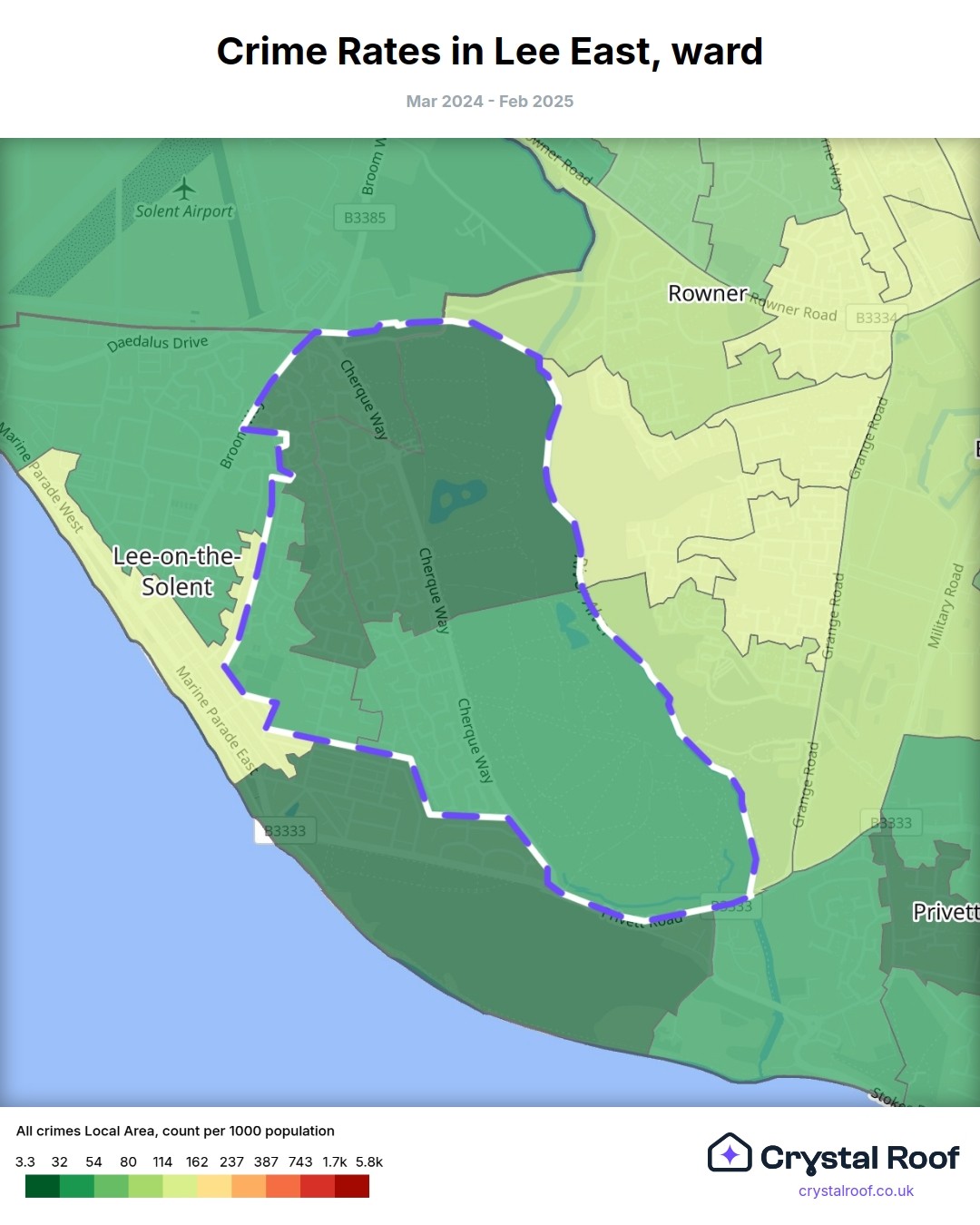 Lee East, (ward) includes areas with the following crime ratings (see map):