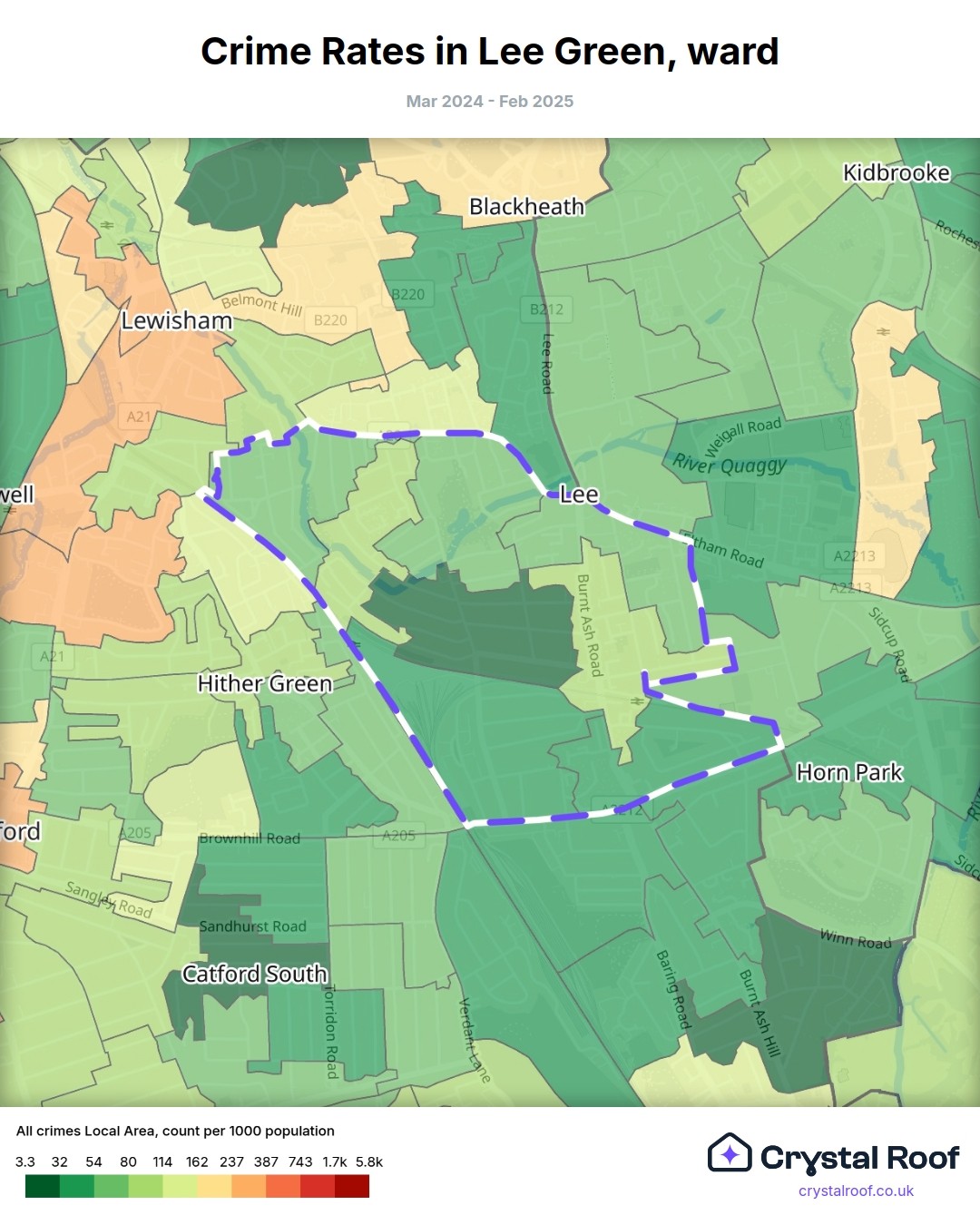 Lee Green, (ward) includes areas with the following crime ratings (see map):