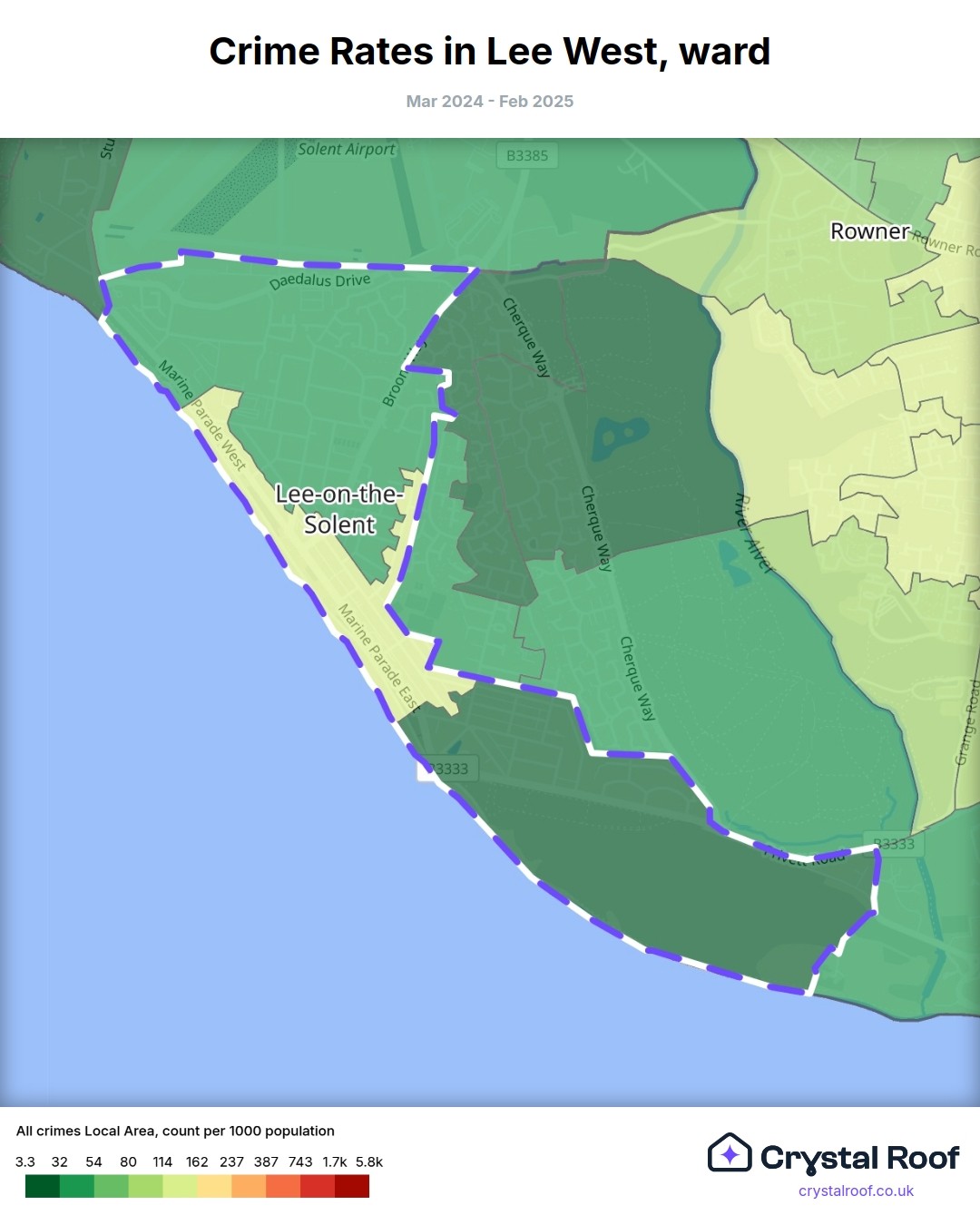 Lee West, (ward) includes areas with the following crime ratings (see map):