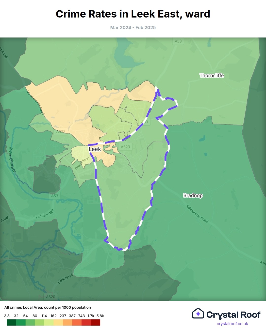 Leek East, (ward) includes areas with the following crime ratings (see map):